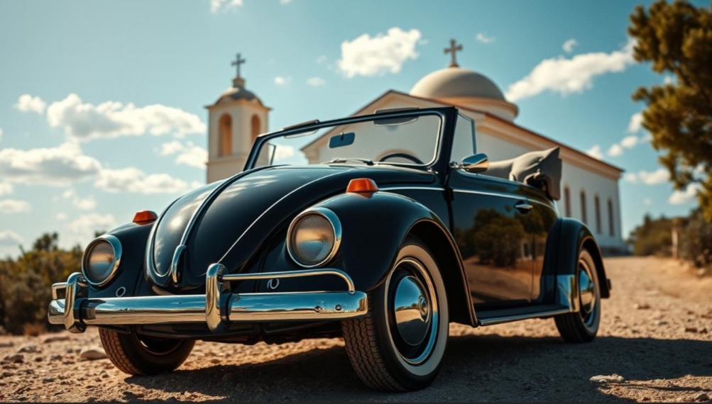 Vintage black Volkswagen beetle with its intricate and luxurious finish